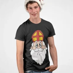 Feel Free Design Sinterklaas T-Shirt | Christmas | Cartoon | 100% Organisch Katoen | Zwart | Maat M