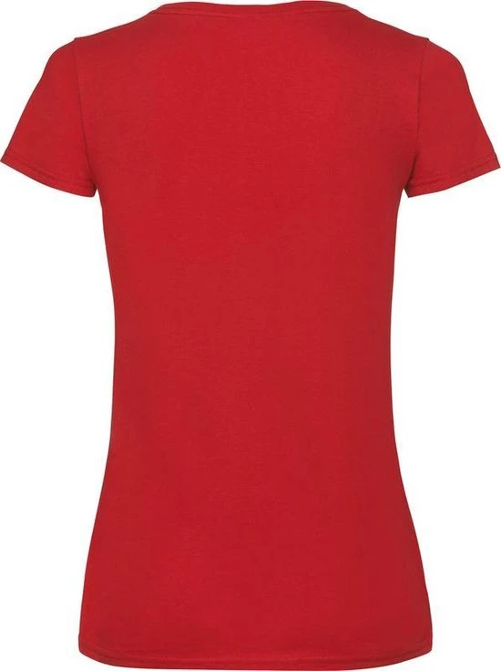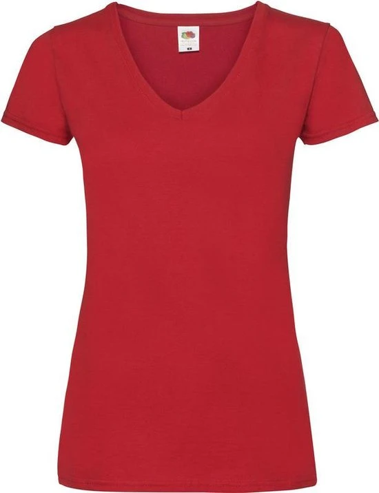 Basic V-hals katoenen t-shirt in de kleur rood voor dames. Een rood dames t-shirt van Fruit Of The Loom met korte mouwen en een v-hals. Materiaal: 100% katoen. Kwaliteit: 165 gram/m2. Casual dameskleding basic shirts met V-hals.