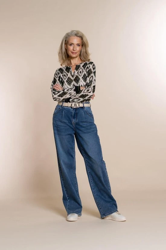 Blouse van Geisha met lange mouwen en een ronde hals met knoopsluiting. De blouse heeft een allover patroon van 3D stippen en is structuurrijk.