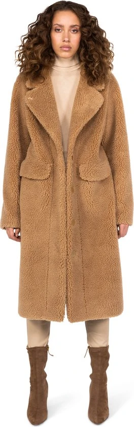 Deze zandkleurige Midnight coat heeft alles wat je nodig hebt voor de koudere dagen in het najaar. De jas is heerlijk zacht door de faux teddy fur kwaliteit. Ook is de Midnight multifunctioneel, doordat je hem kunt omkeren. De suedine kant komt dan tevoorschijn. De jas sluit door middel van grote drukknopen.