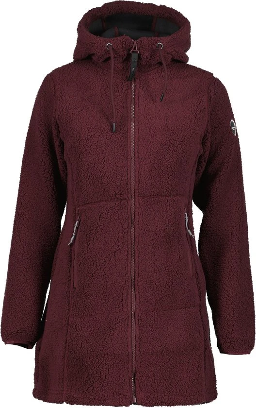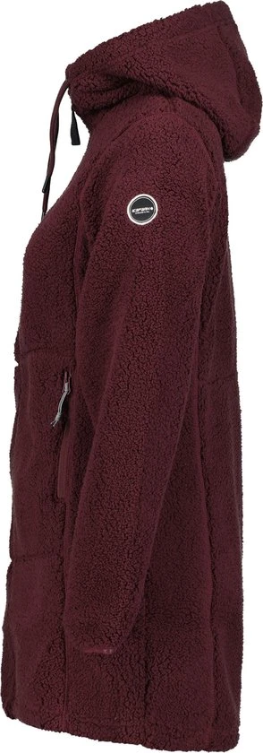Icepeak midlayer/tussenlaag voor dames. Capuchonverstelling met trekkoord. Twee voorzakken met rits. Het thermische materiaal is warm en lichtgewicht en droogt snel. De pile fleece is ook uitermate goed geschikt als buitenlaag als de invloeden van buitenaf minimaal zijn.