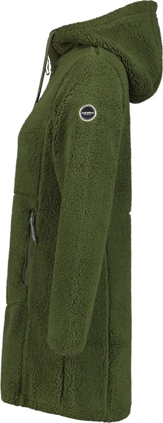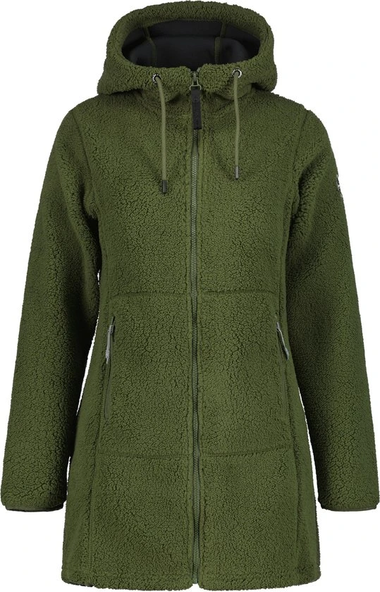 Icepeak midlayer/tussenlaag voor dames. Capuchonverstelling met trekkoord. Twee voorzakken met rits. Het thermische materiaal is warm en lichtgewicht en droogt snel. De pile fleece is ook uitermate goed geschikt als buitenlaag als de invloeden van buitenaf minimaal zijn.