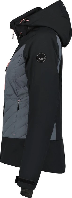 Icepeak Jacket For Women. Articulated Elbows. Comfortable Inner Collar. Adjustable Hood. Detachable Hood. Adjustable Cuffs. Elastic Inner Cuffs With Thumbholes. Lined Hand Warming Pockets. Two Internal Pockets. Ski Pass Pocket On The Sleeve. Adjustable Hem. Fixed Snow Gaiter. Quilted Parts. Water Column 10 000 Mm. Breathability 8 000 GM224H. Softshell Is A Functional Material For A Wide Range Of Outdoor Activities. The Product Provides Weather Protection While Being Comfortably Flexible At The Same Time. The Fabric Surface Has Been Treated With A Water-Repellent Finish. The Product Is Made Water-Repellent Without Pfcs. The 2-Way Stretch Material Increases The Freedom Of Movement. This A.W.S. Extreme Product Meets The Needs Of Active Outdoor People Even In Extreme Conditions. Structural Details And Protective Materials Make The Product Functional In Every Situation, No Matter The Weather. Light Insulation.
