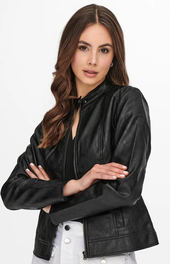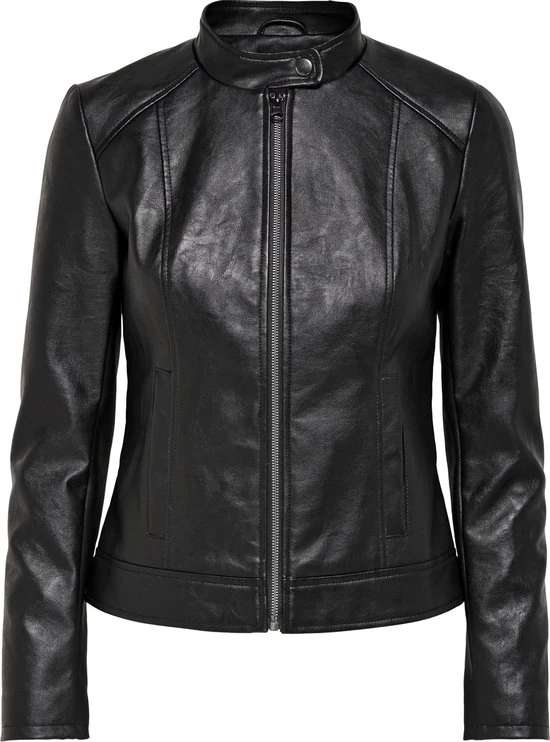 Ideaal voor tussen de seizoenen in. Imitatieleer. – Type stijl : Biker jas met leer-look- Sluiting / gulp : Asymmetrische ritssluiting aan de voorkant- Extra details : Gequilte details op de schouder- Mouw lengte : Lange mouwen- Zakken : Paspelzak op de borst- Zak zijkant : Zijzakken met ritssluiting