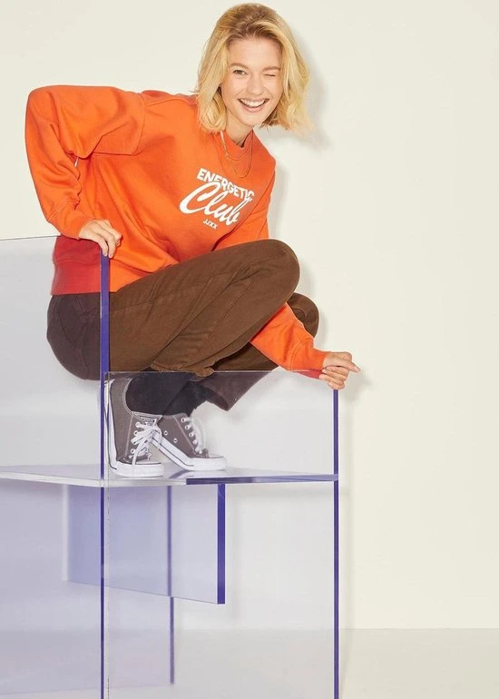 JJXX Een relaxte, coole trui die je look helemaal af maakt. Meer heb je niet nodig! Deze sweat heeft een fijne pasvorm en leuke details. Trendy, stoer en comfortabel.