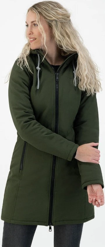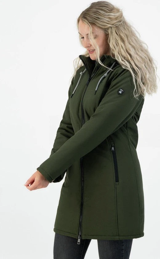 De Kjelvik “Tina” is een lange gewatteerde softshell jas. De softshell voelt heerlijk zacht aan en bevat stretch. De softshell is gemaakt van een winddichte, waterafstotende en ademende stof.