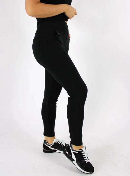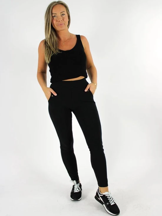 Deze tregging is zeer geschikt om zowel casual als chique te dragen. Door de steekzakken valt het model als een pantalon. De dikkere stretch stof samen met de ‘’gouden’’ details op de zakken zorgen voor een chique uitstraling. Maar in werkelijkheid zit het als een zeer comfortabele legging.