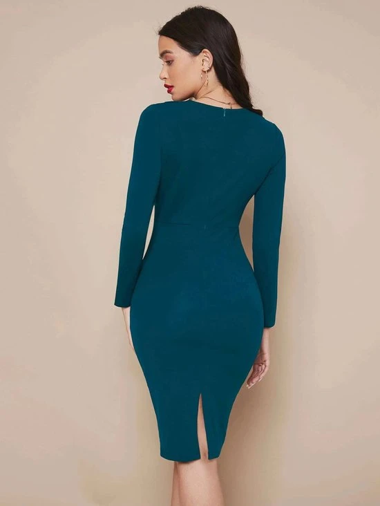 Een modieuze jurk voor de wintermaanden. Deze jurk heeft een hoge taille. De hoge taille geeft deze jurk een elegante look. De jurk is van zacht/soepel materiaal en valt figuurvolgend. Dit is mode, dit is wat je wilt: een jurk met stijl, geheel naar de laatste mode!