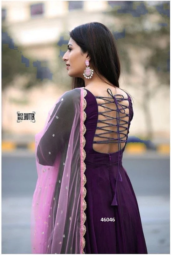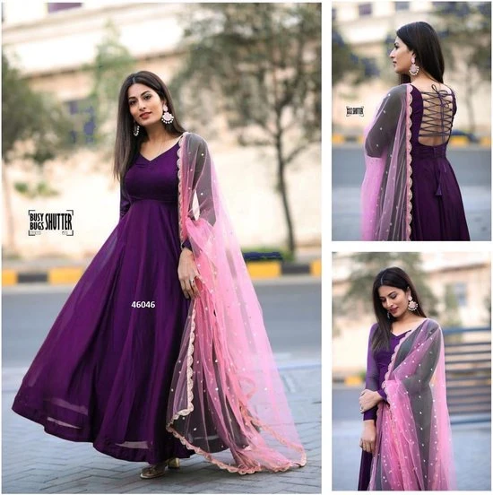 Readymade Semi Stiched Georgette Anarkali Gown Indian Churidar Dress with Dupatta.