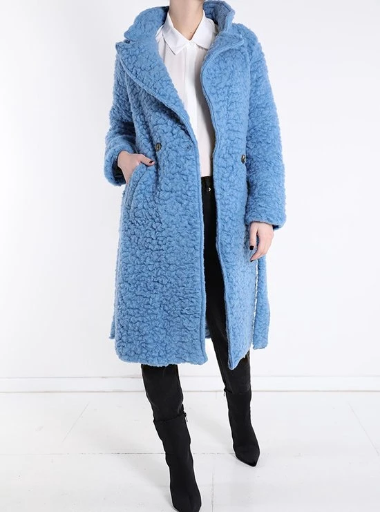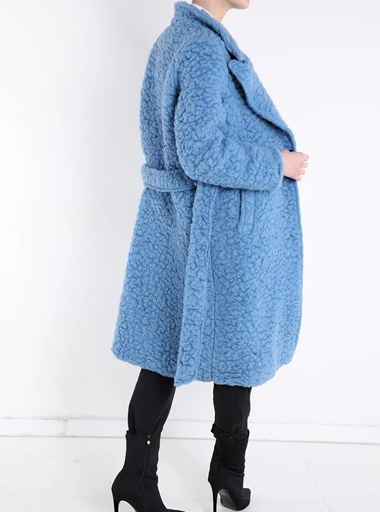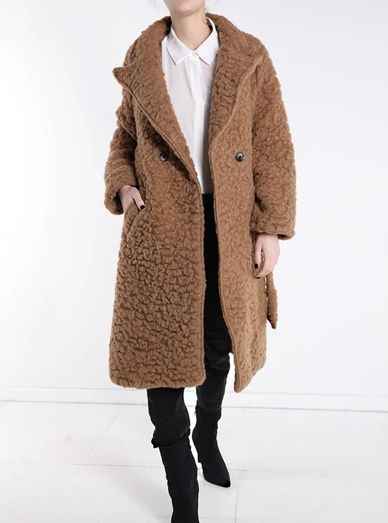 Jas Lisa is gevoerd met niet uitneembare voering. De jas is van nepbont en heeft steekzakken en een ceintuur.