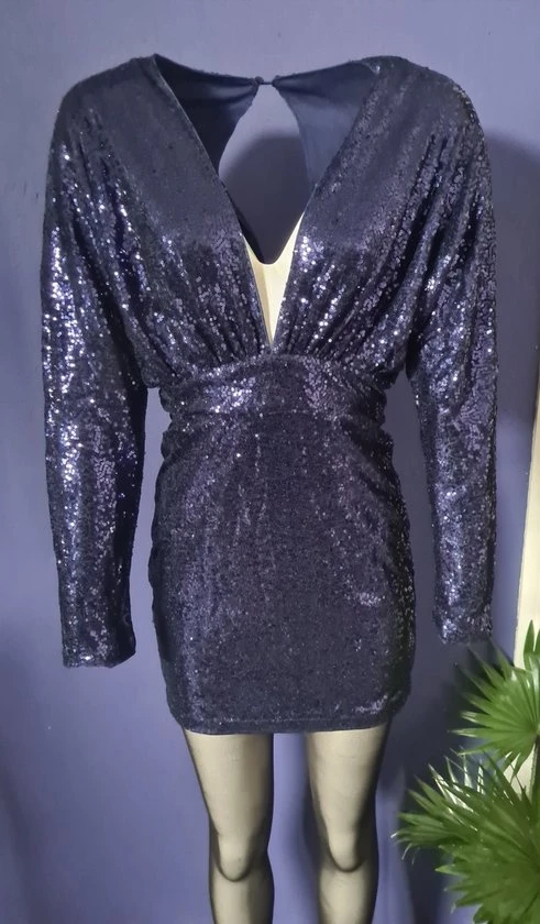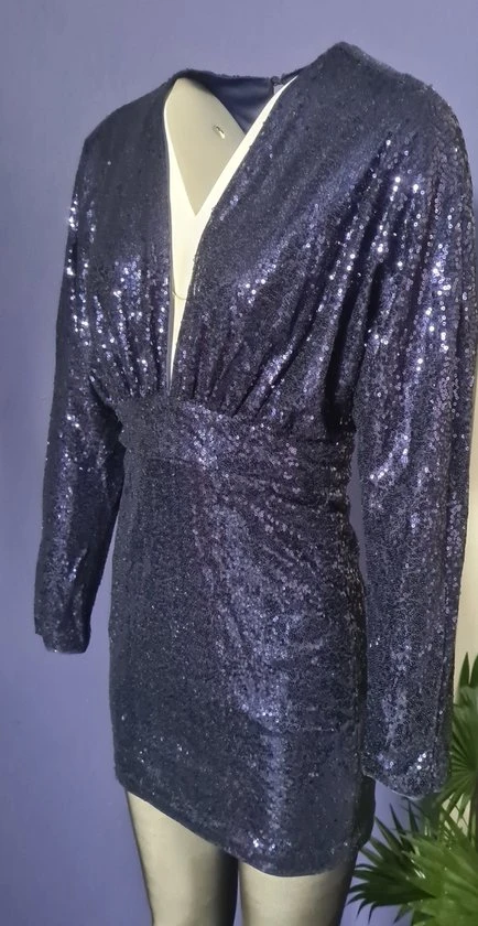 jurk glitter blauw perfeckte look voor een avondje uit of voor de feest dagen ook in de kleur rood verkrijgbaar