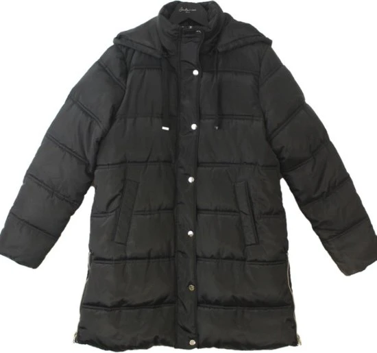 De jas heeft een rits en over de rits kan je de jas nog sluiten met extra drukknopen.