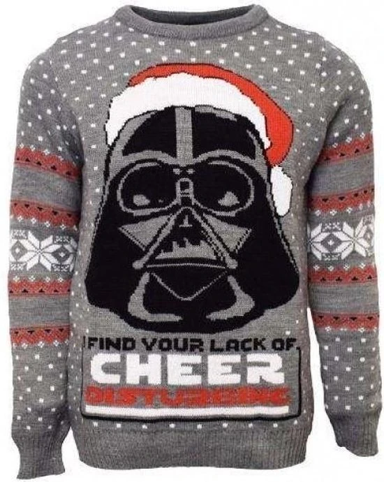 De kersttrui is unisex en is voorzien van Darth vader met een kerstmuts op, met daarbij de tekst: I find your lack of cheer disturbing. De trui is 100% acryl.