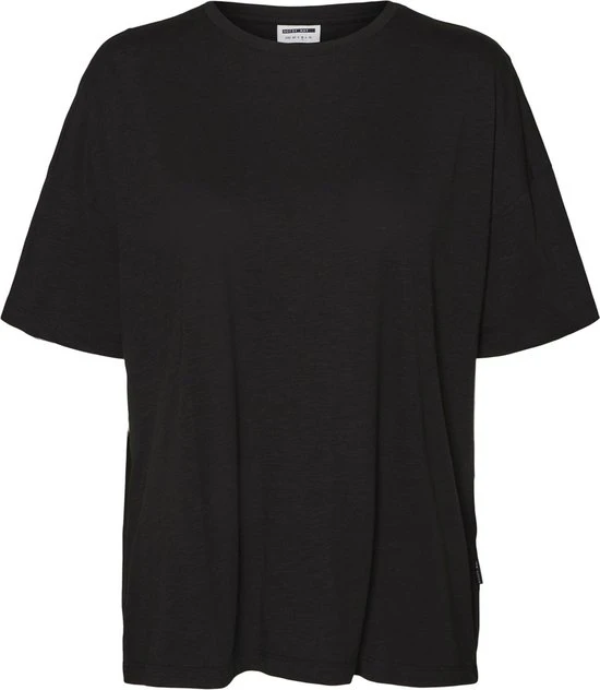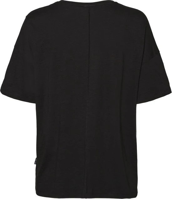 Dit zwarte jersey T-shirt van het merk Noisy May heeft een losvallende pasvorm en een ronde hals. Daarnaast heeft het shirt korte mouwen en een naad midden achter. Het T-shirt is gemaakt van 50% katoen en 50% polyester.