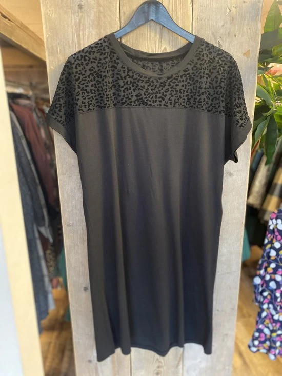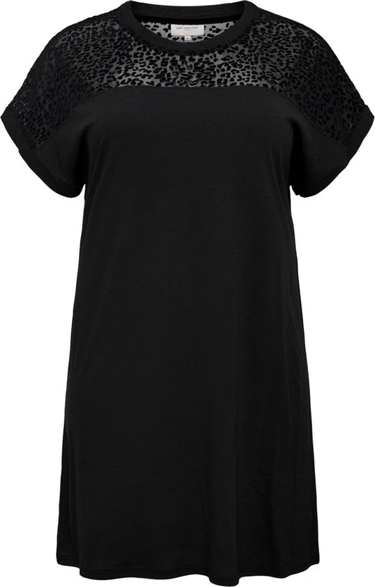 Is het niet een plaatje deze tricot jurk van ONLY Carmakoma. Bij de ronde hals zit een opengewerkte pas in velvet met een animal print. Deze loopt door over de aangeknipte korte mouwen. De jurk valt net op de knie en is iets klokkend aan de onderkant. Ook leuk te dragen op de tricot broek met flared pijp 15187883.