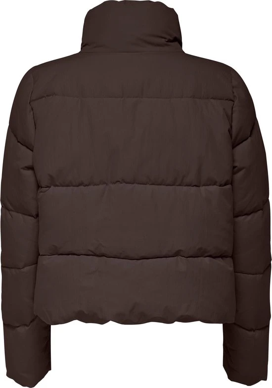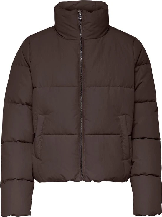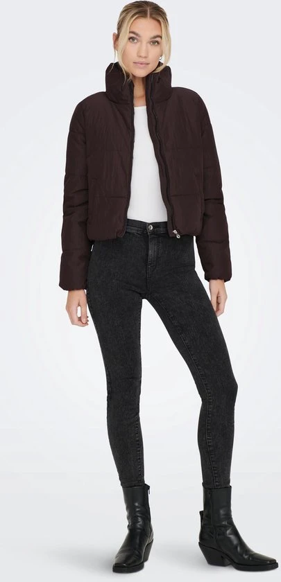 Gewatteerde tussenjas van Only. De lange mouwen hebben een elastische zoom. Dit model heeft een opstaande kraag en sluit met een rits. De jas heeft twee steekzakken aan de voorkant die sluiten met een drukknoop.
