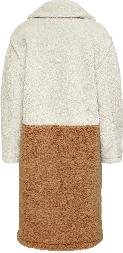 Halflange teddyjas van Only met lange mouwen. Dit model heeft een revers kraag en sluit met een drukknoop. Dit model heeft twee steekzakken aan de voorkant.