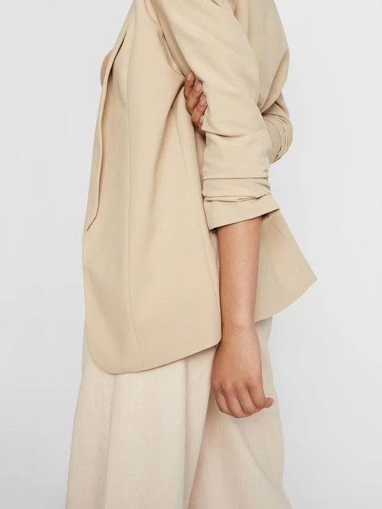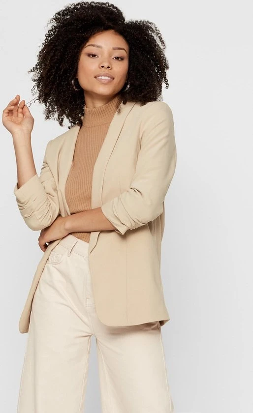 Deze fijne blazer in het creme is een geweldig basis item die zowel geschikt is om casual als feestelijk te dragen. De blazer heeft een regular fit en driekwart mouwen.