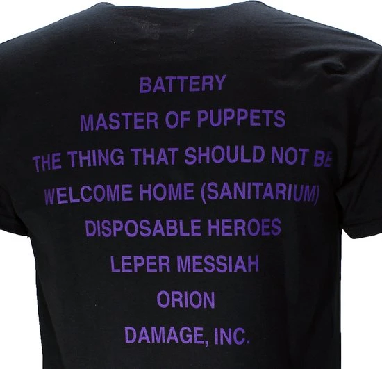 Officieel gelicenseerde Metallica merchandise! Dit is een dubbelzijdig T-Shirt van het album Master of Puppets met daarop de album cover en de tracklist.