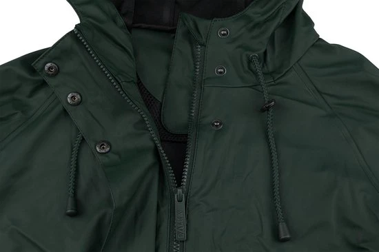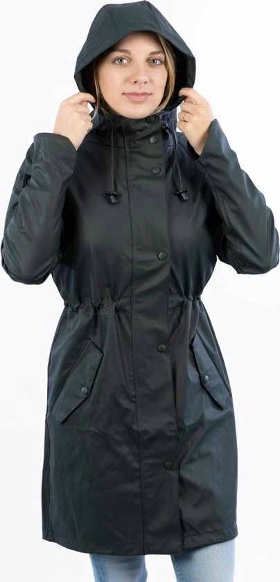 Geen kans om nat te worden met deze functionele en trendy regenjas met capuchon van Ralka. Gemaakt van hoogwaardig materiaal is de jas waterdicht tot minimaal een waterkolom van 3000 mm, ruim voldoende om je tijdens een wandeling of op de fiets met regenachtig weer droog te houden. De regenmantel is voorzien van een 2-way rits en steekzakken met regenoverslagen. De jas is vervaardigd met gelaste naden en een matte PU coating voor extra waterdichtheid. Een opening in de rug van de jas zorgt voor voldoende ventilatie terwijl de jas als geheel winddicht blijft. De getailleerde pasvorm van de Mizzle is naar wens in te stellen en zorgt voor een stijlvolle look. Via een elastisch koord met stopper is de capuchon naar wens verstelbaar. Bij de mouwen is de breedte met drukknopen aan te passen. Kortom, de perfecte jas voor typisch Nederlandse buien.