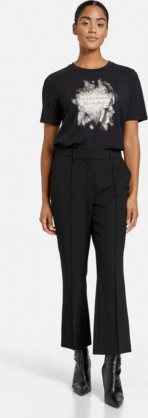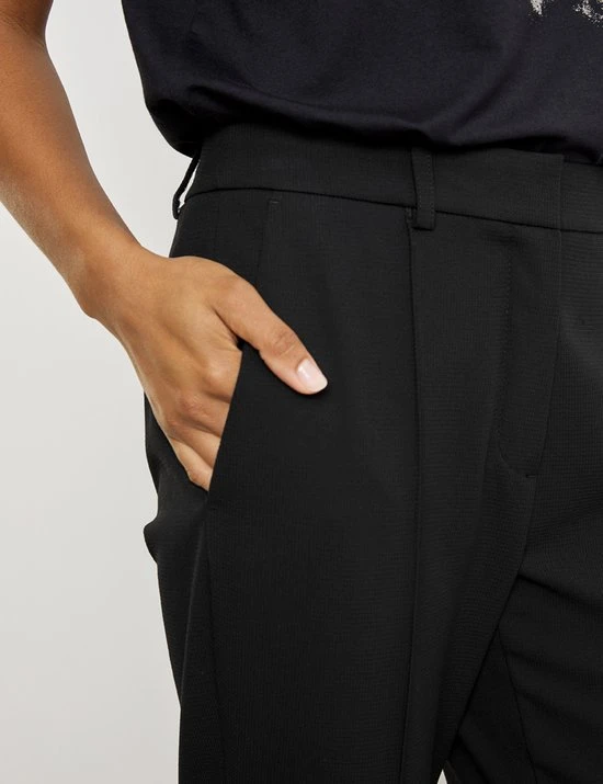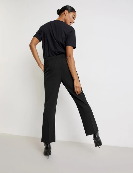 Maakt je dagelijkse outfit of kantooroutfit compleet en mag in geen enkele garderobe ontbreken: met deze flared broek heb je altijd een stijlvolle en trendy combipartner bij de hand. Het fijne materiaal met comfortabele stretch zorgt voor uitstekend draagcomfort. Slimme designdetails, zoals gestikte persplooien, maken de look compleet.