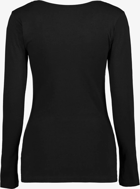 Een basic die altijd goed van pas komt! Dit zwarte shirt met lange mouwen voor dames heeft een ronde hals en een mooie, aansluitende pasvorm. Gemaakt van 95% katoen en 5% elastaan. Nu 2 shirtjes voor €16, geldig op artikelen met een rood 2 voor 16 actielabel.