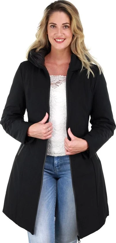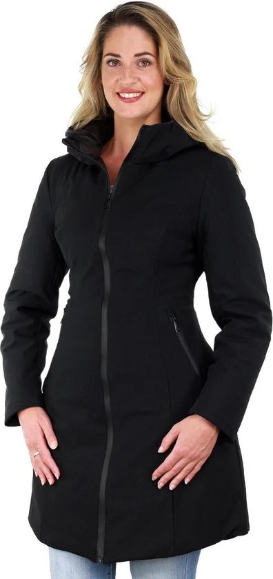 Deze halflange Zita dames winterjas van Versano is gemaakt van stevige stof met een lichte stretch (76% polyamide/24% spandex). De jas is lekker warm en heeft een Slim Fit pasvorm en is dus met name geschikt voor een slank postuur. De Zita jas is een halflang model met 2 ritsvakken op heuphoogte en een binnenzak. Je sluit deze jas met een rits die mooi doorloopt tot in de hoge kraag. De jas heeft een vaste capuchon. Bijzonder: de ritsen op deze jas zijn mooi afgewerkt met een rubberen band.