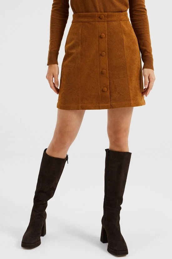 Een regular fit rok van corduroy met toegevoegde stretch. Het korte model heeft sierknopen op het voorpand, een ritssluiting op het achterpand en een onderrok.